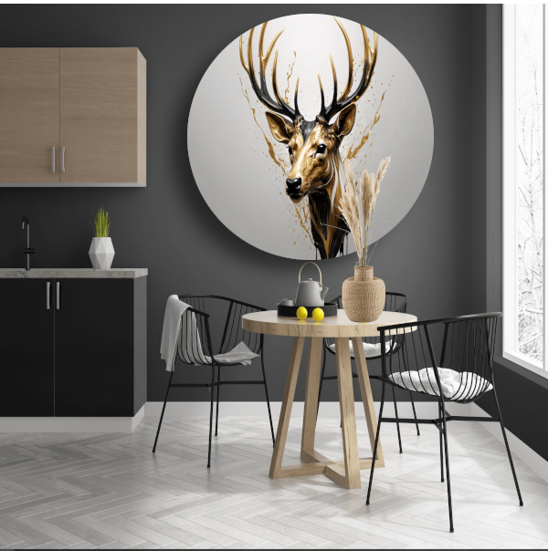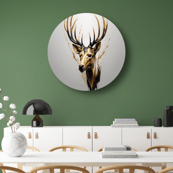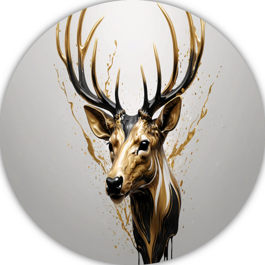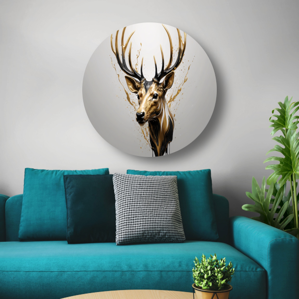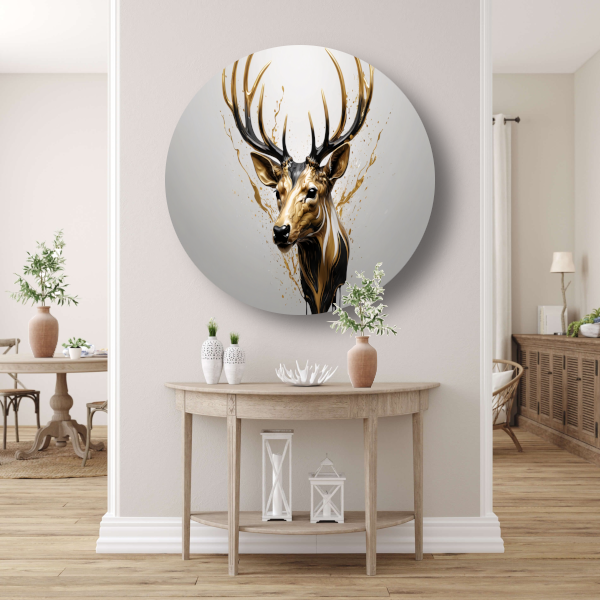 Gouden Hertenhoofd met Dynamische Spatten aluminium muurcirkel