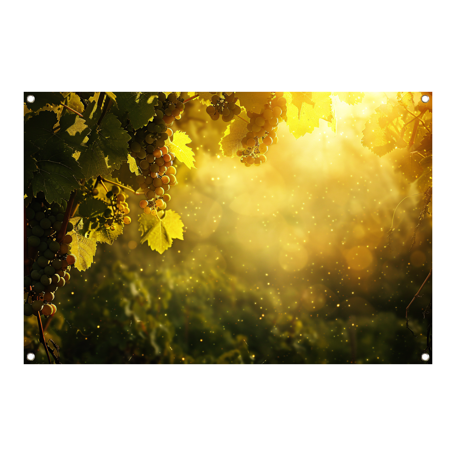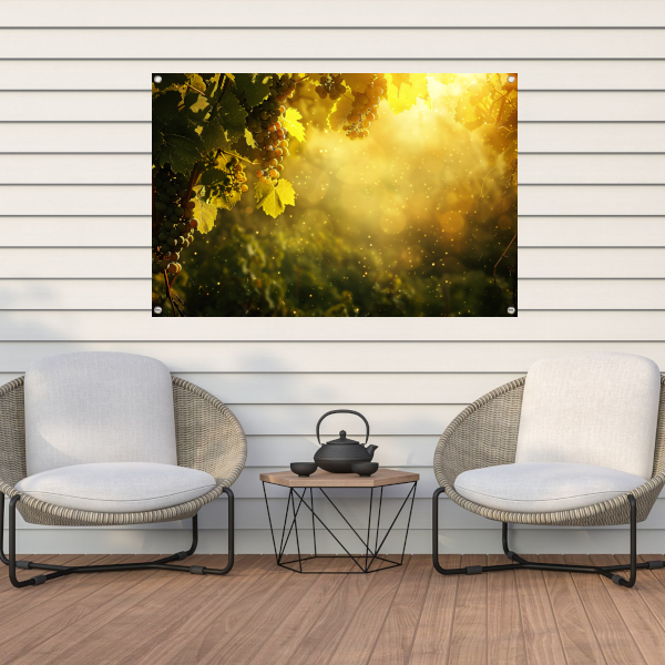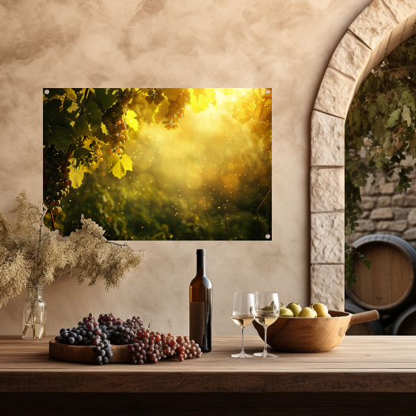 Gouden lichtval over wijngaard bij zonsondergang tuinposter
