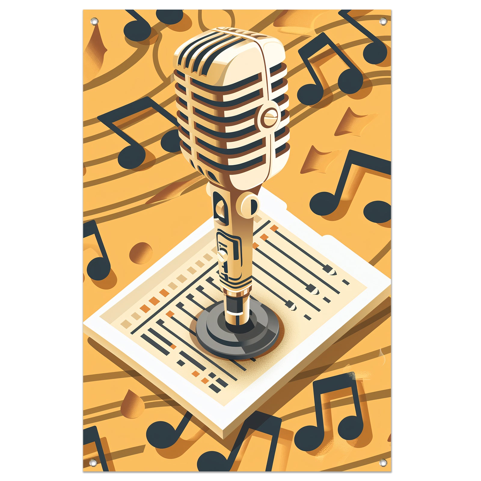 Gouden Microfoon met Notenbalk in Art Deco Stijl tuinposter