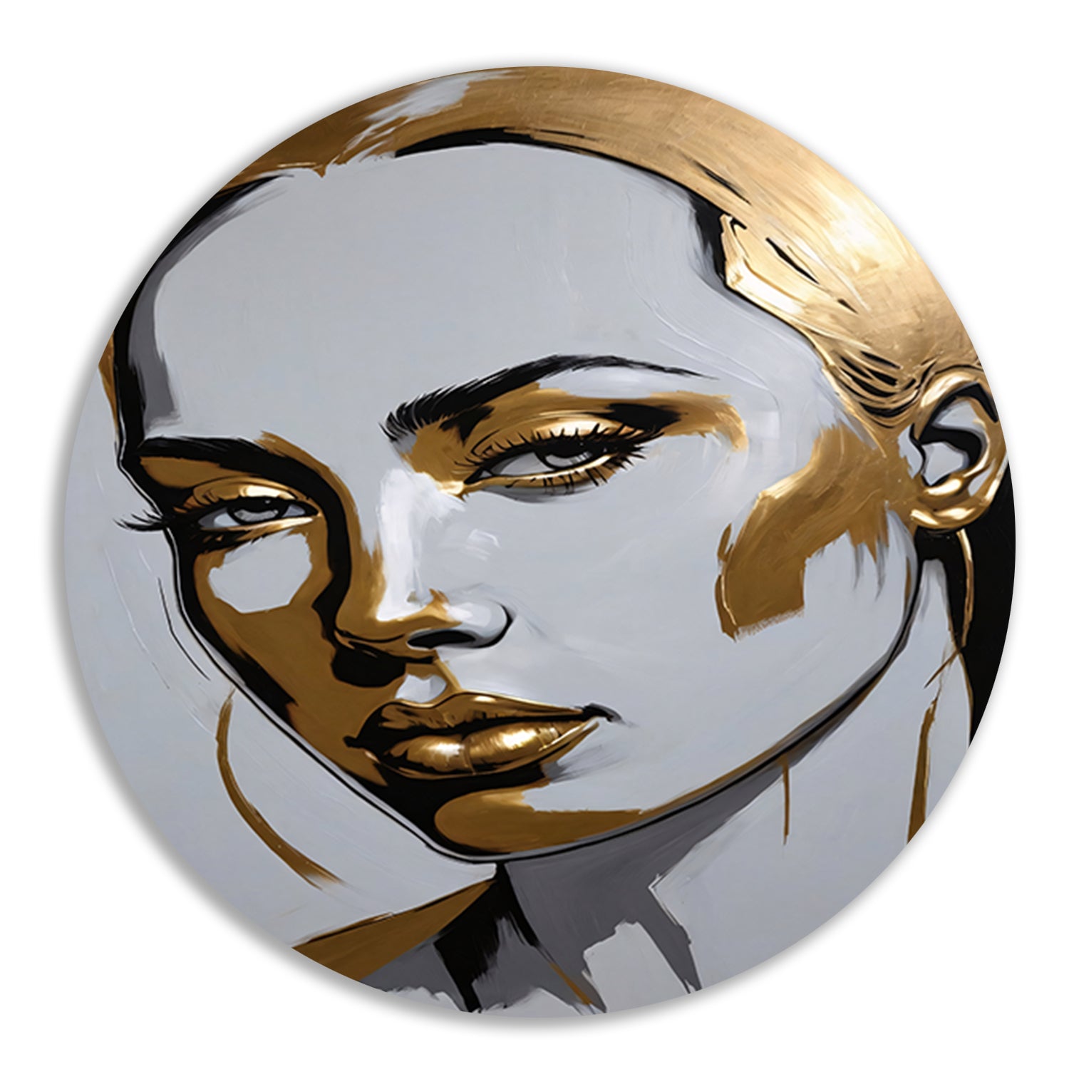 Gouden Portret van een Vrouw met Moderne Kunst aluminium muurcirkel