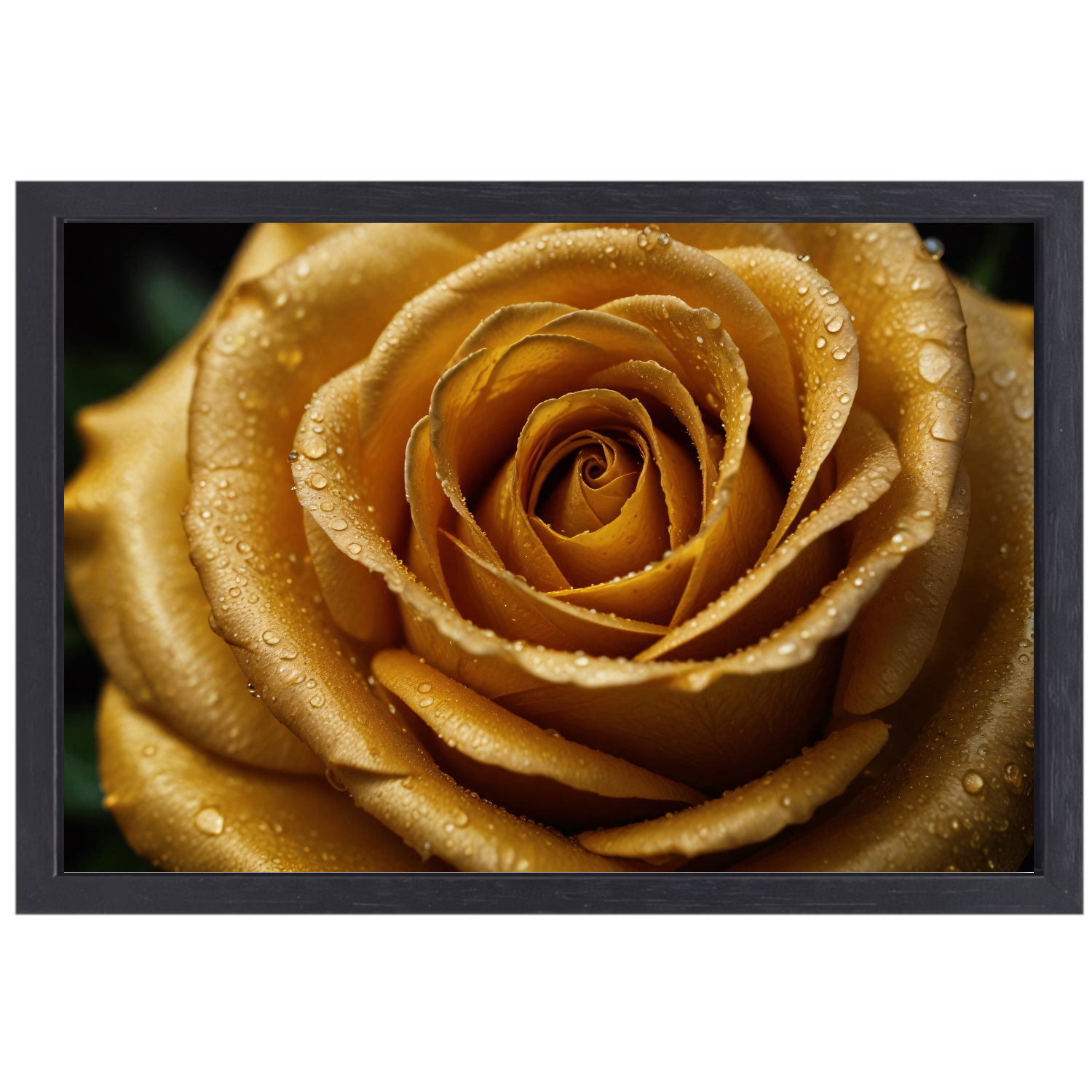 Gouden Roos met Dauw op Zwarte Achtergrond canvas met baklijst