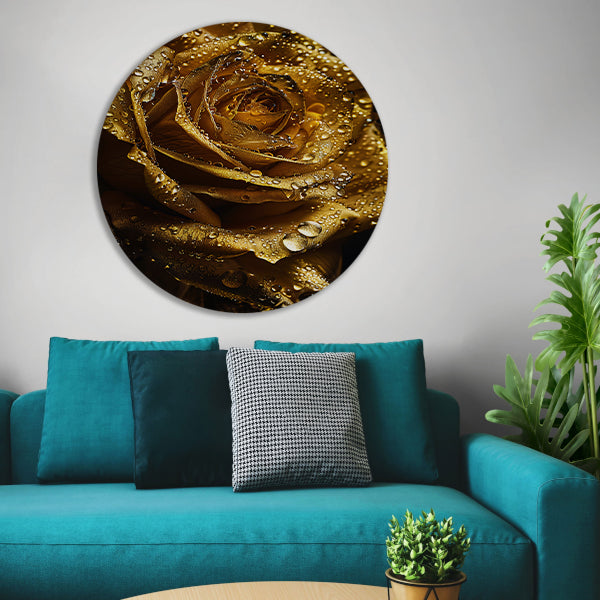 Gouden roos met fonkelende waterdruppels close-up forex muurcirkel