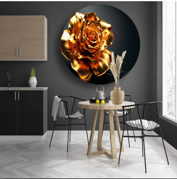 Kortom, deze gouden roos op zwart fluwelen achtergrond aluminium muurcirkel is een unieke en stijlvolle toevoeging aan ieder interieur. Haal deze prachtige eyecatcher vandaag nog in huis en geniet van de luxe en sfeer die hij met zich meebrengt.