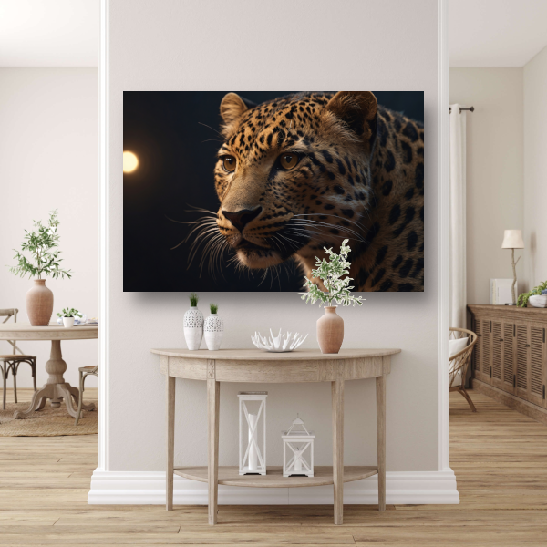 Dit luipaardportret is verkrijgbaar in meerdere maten, waardoor het perfect is voor zowel grote als kleine ruimtes. Of je nu een statement wilt maken in de woonkamer, slaapkamer of kantoor, dit kunstwerk past perfect in elke omgeving.