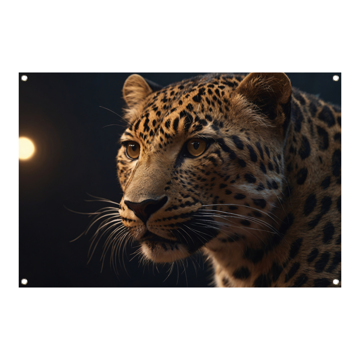 Gouden schemerlicht over luipaardportret tuinposter