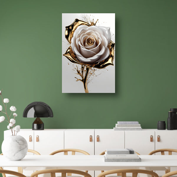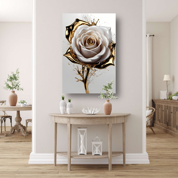 Gouden Spetters en Witte Roos Kunstwerk acrylglas