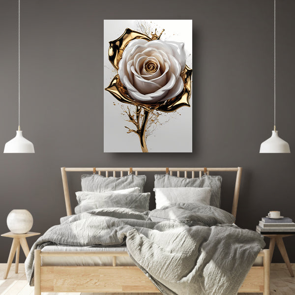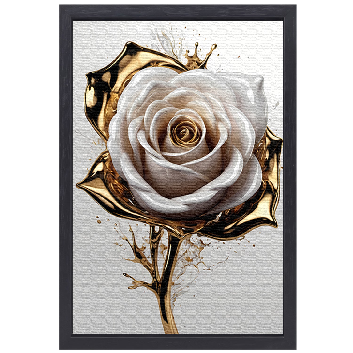 Gouden Spetters en Witte Roos Kunstwerk canvas met baklijst