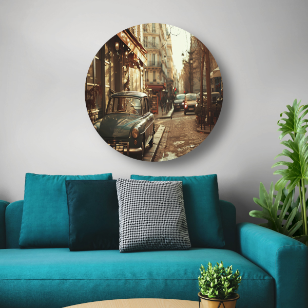 Gouden uur in een Parijse straat aluminium muurcirkel