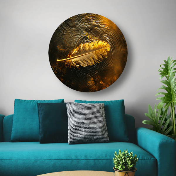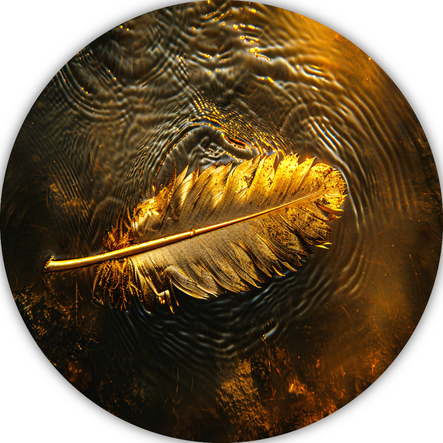 Gouden veer drijvend op een waterige zonsondergang forex muurcirkel