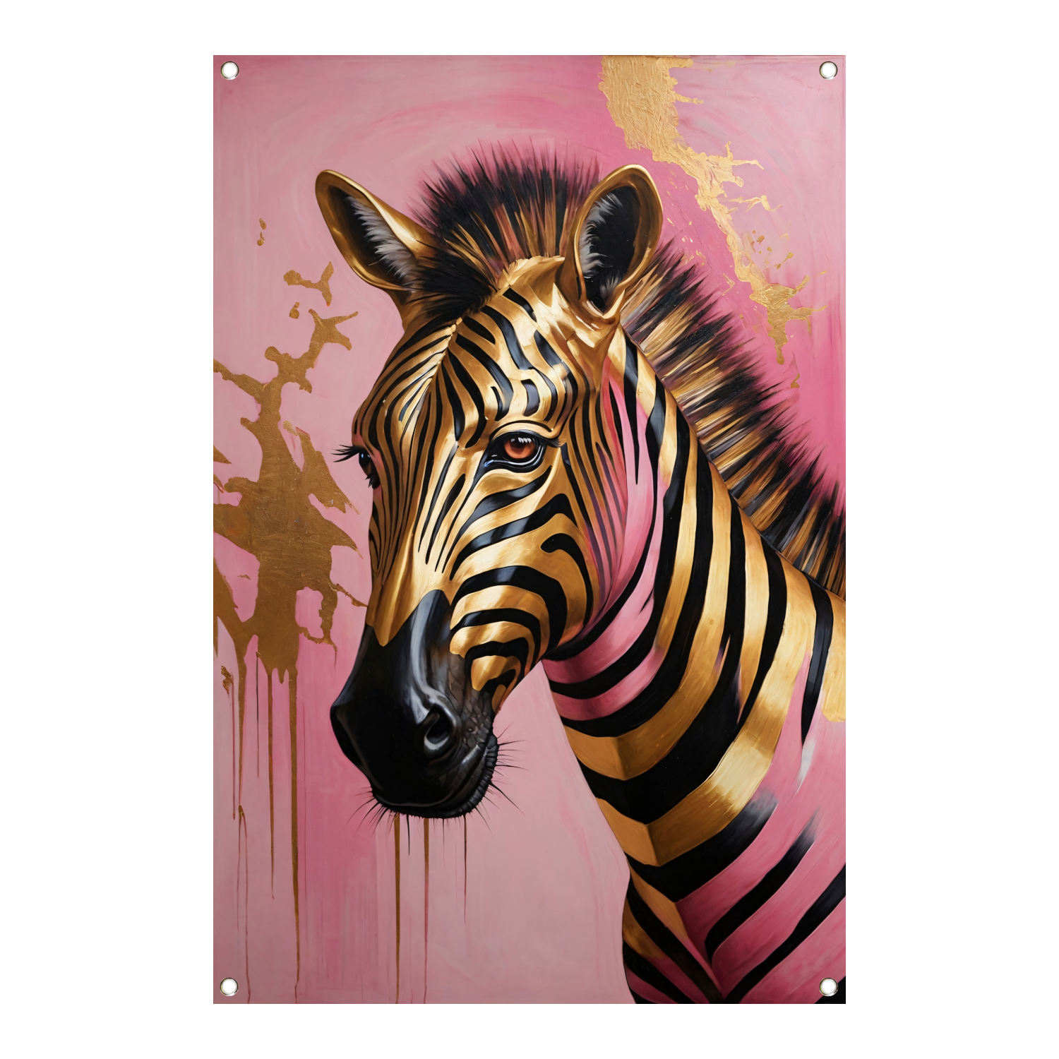 Gouden Zebra met Roze Achtergrond Kunstwerk tuinposter