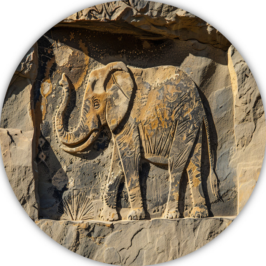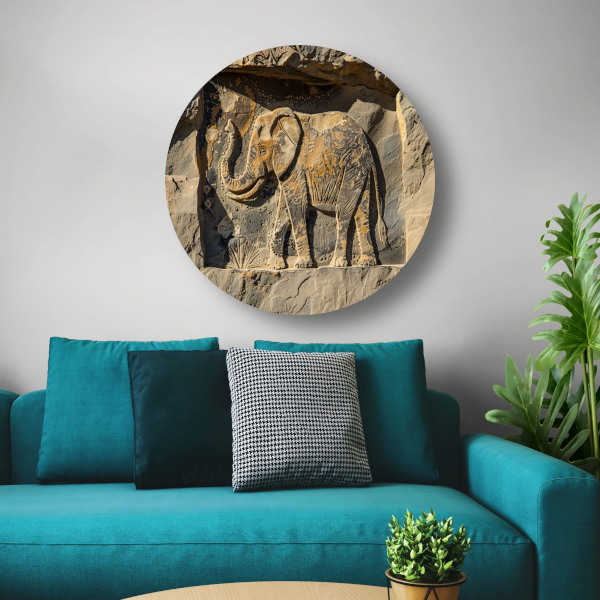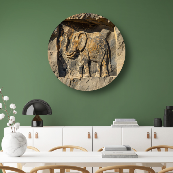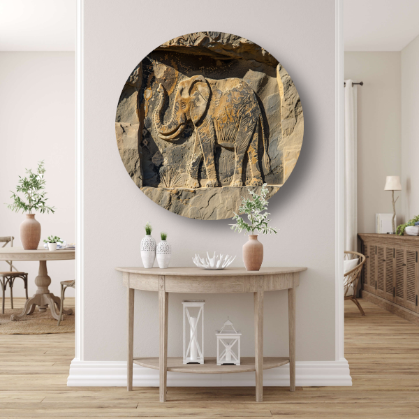 Gravure olifant op steen muurdecoratie aluminium muurcirkel