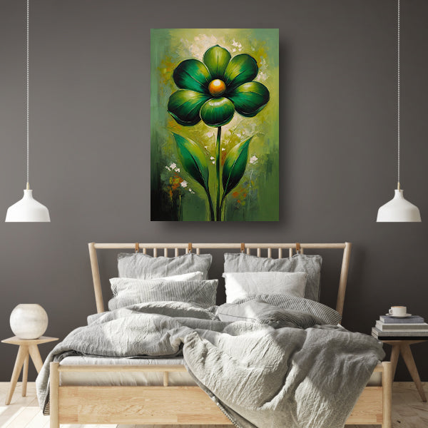Groene Abstracte Bloem met Dynamische Bladeren poster