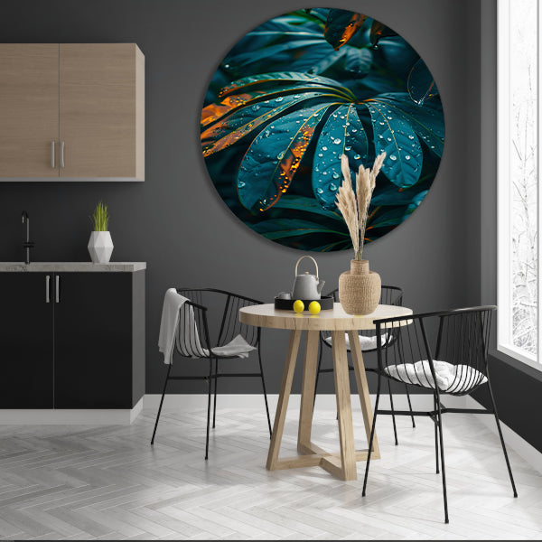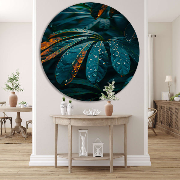 Breng een vleugje natuurlijke schoonheid en sereniteit in jouw huis met deze prachtige muurcirkel van een groene plant met dauwdruppels. Een unieke en stijlvolle toevoeging aan elke kamer!
