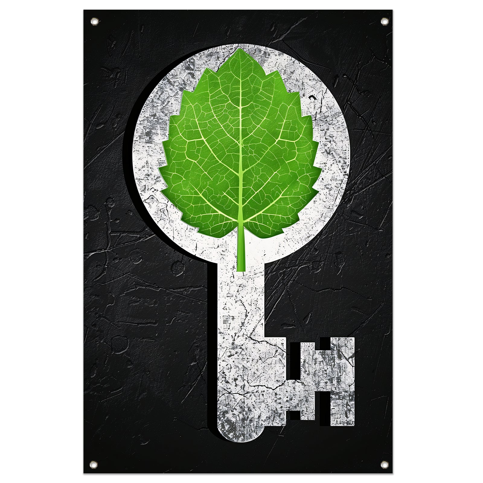 Groene Sleutel in een Stenen Omlijsting tuinposter