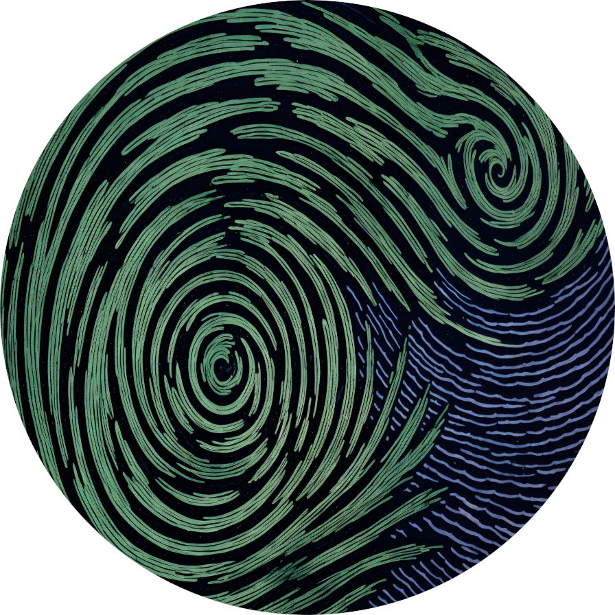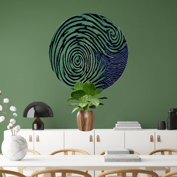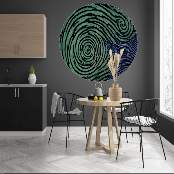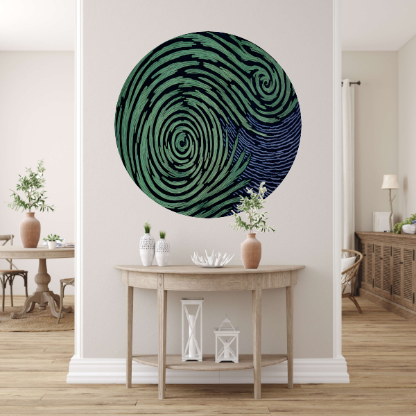 Groene Swirls in Nachtelijke Sfeer aluminium muurcirkel