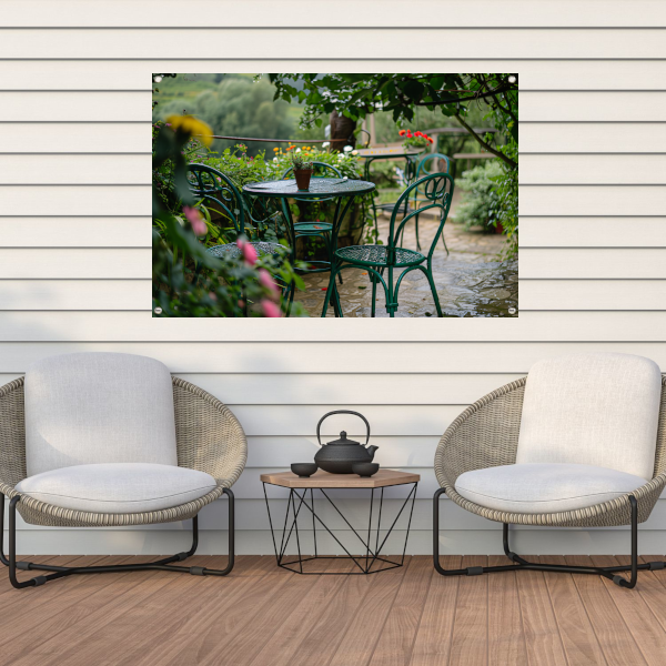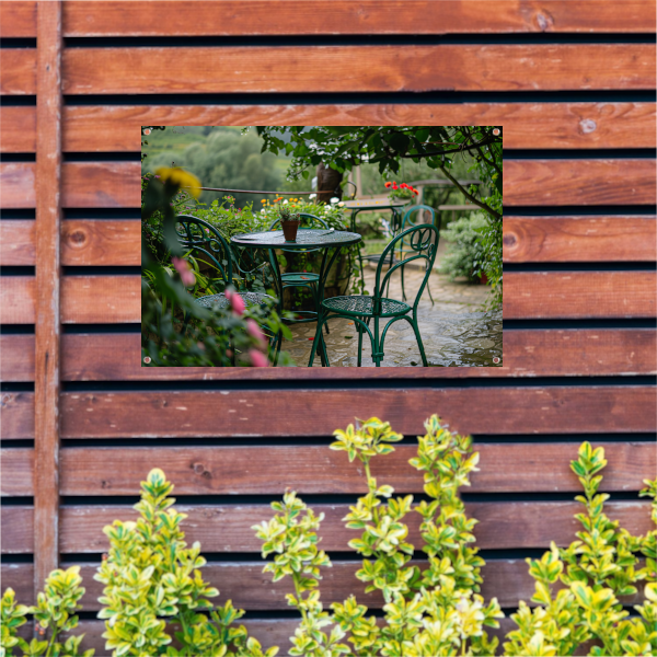 Onze tuinposters zijn UV- en waterbestendig, waardoor ze bestand zijn tegen zon en regen en hun kleuren langdurig mooi blijven. Alle tuinposters van De Muurdecoratie zijn voorzien van ringen in de hoeken, zodat je ze eenvoudig kunt ophangen. Let op: onze tuinposters worden niet met ophangsysteem geleverd.
