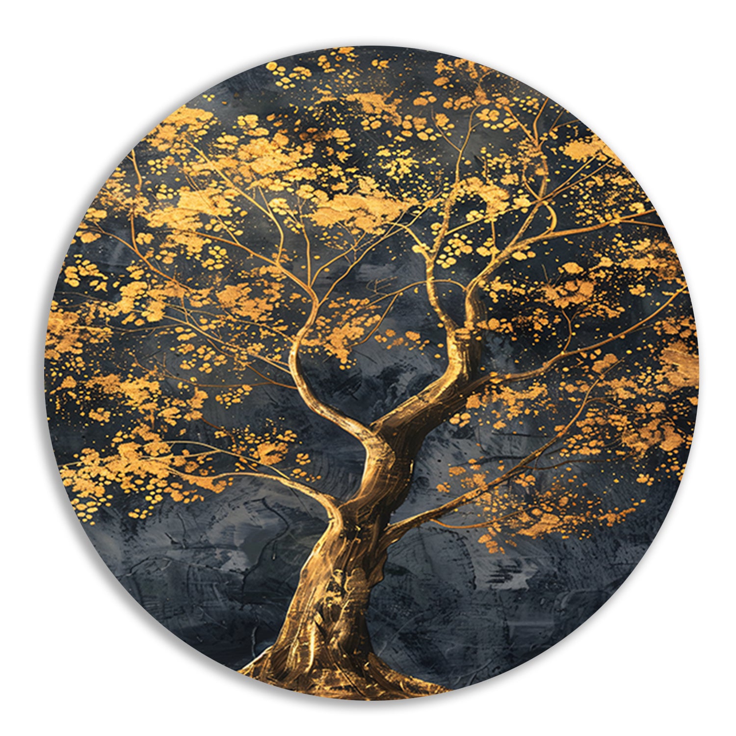 Grote boom met gouden bladeren kunst aluminium muurcirkel