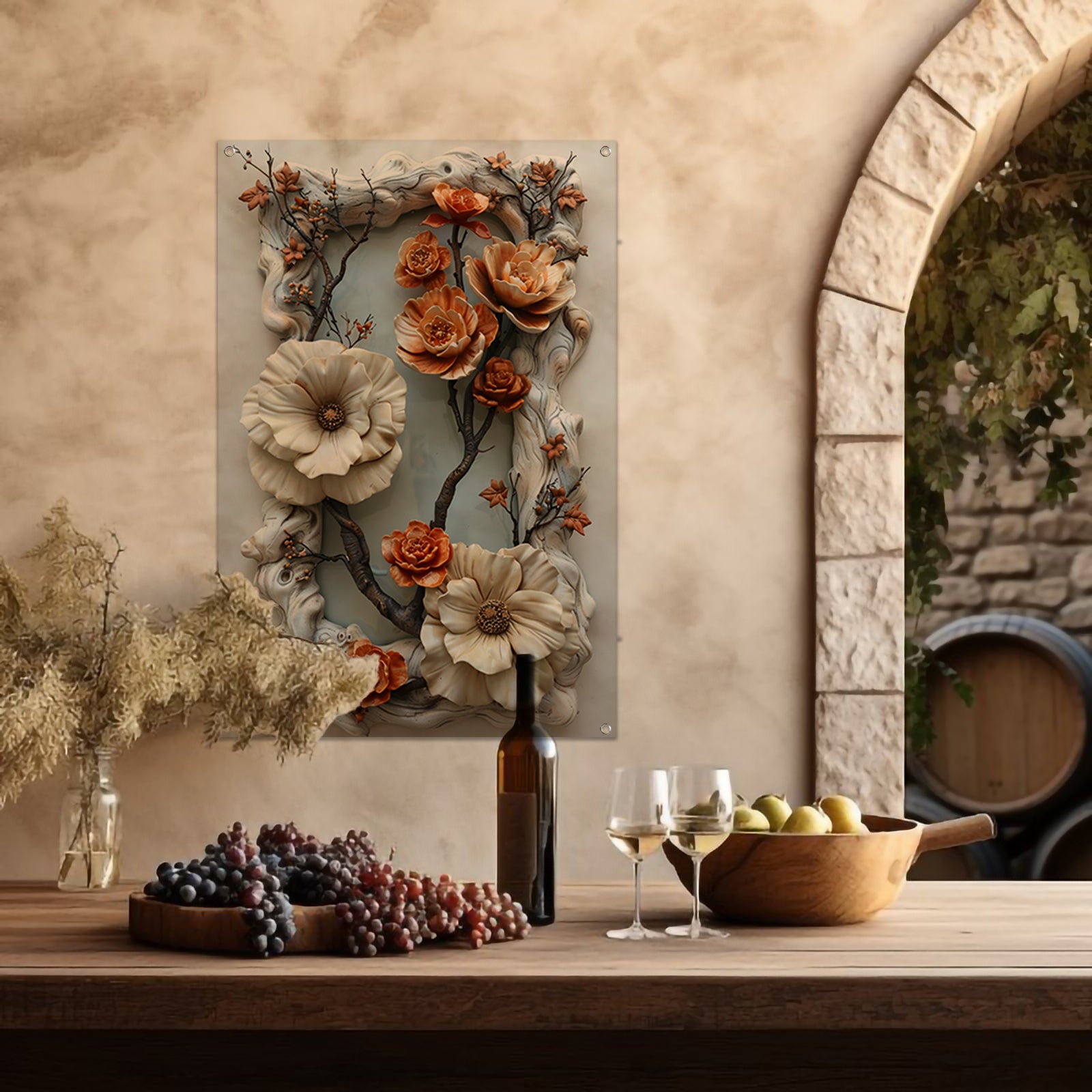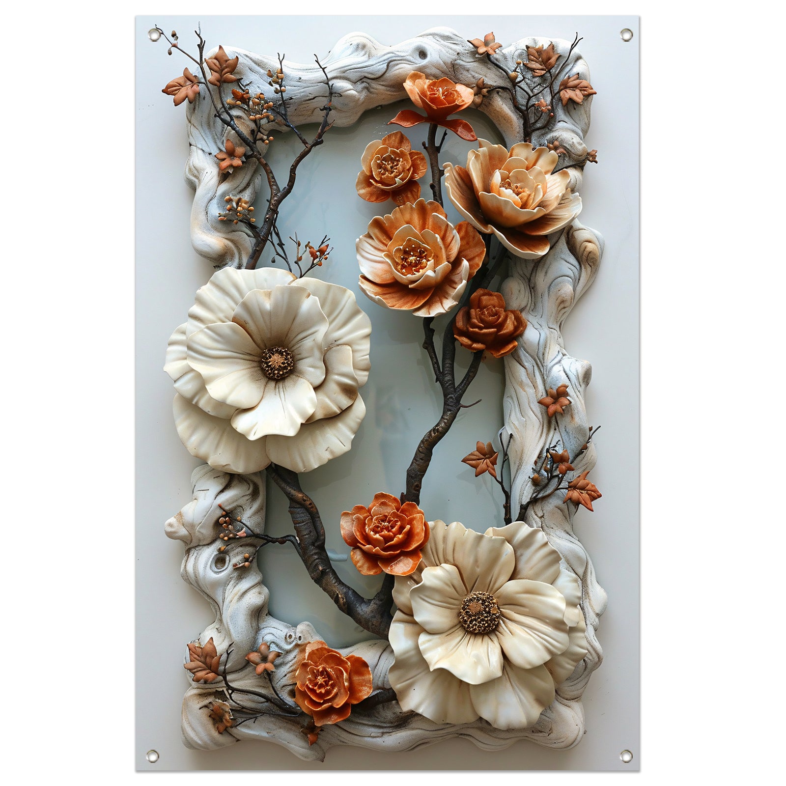 Handgemaakt bloemenreliëf in natuurlijke kleuren tuinposter