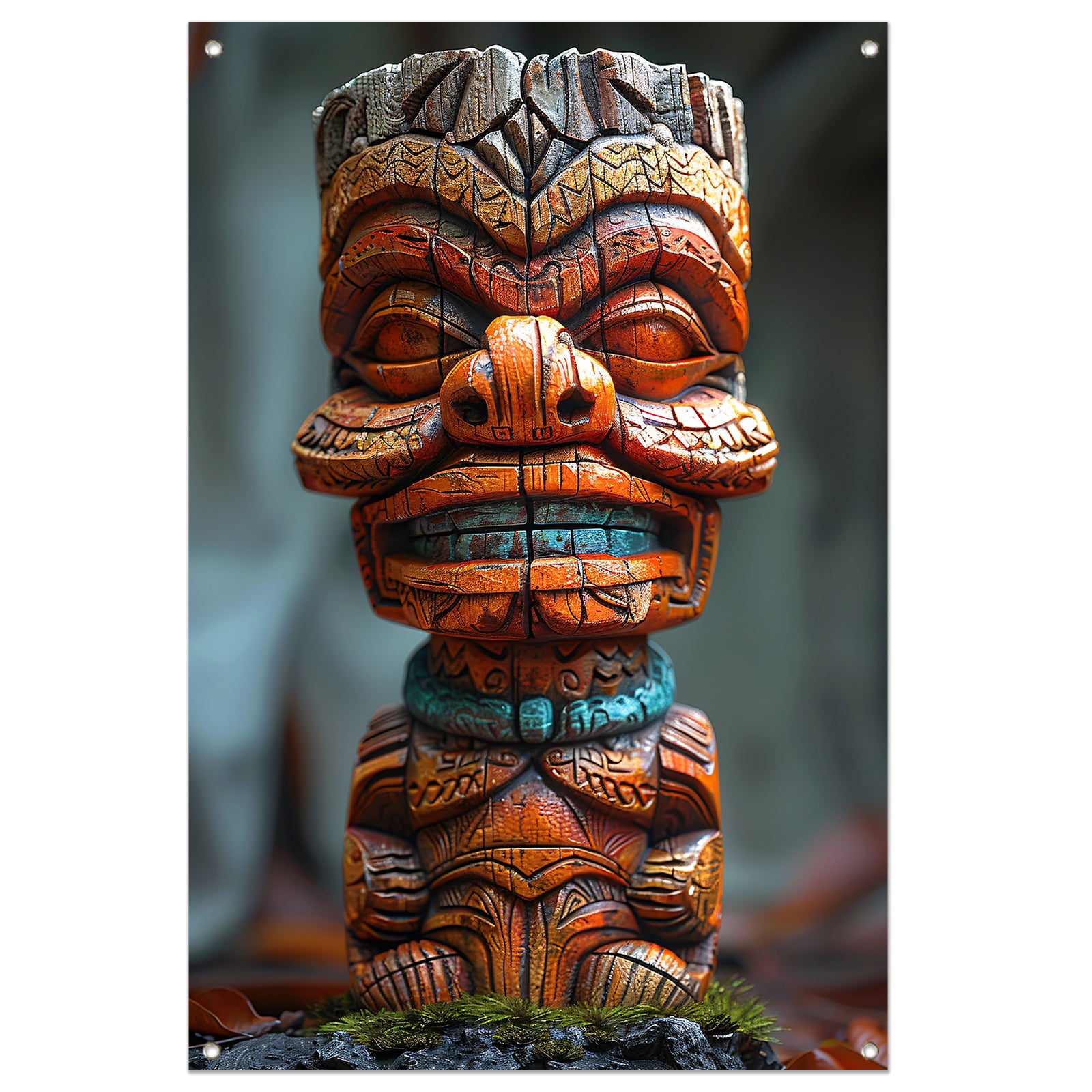 Handgemaakte Tiki Tovenaar met Levendige Kleuren tuinposter