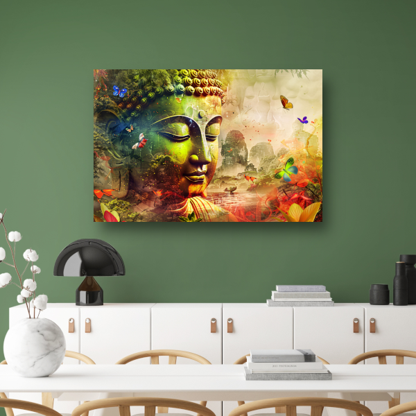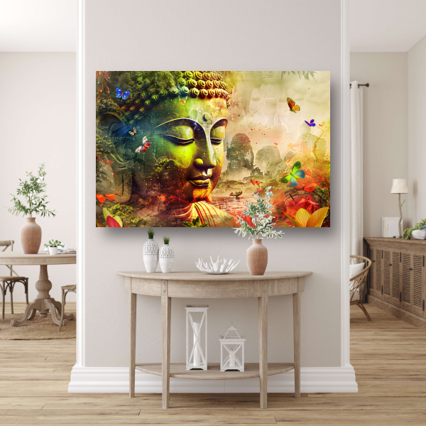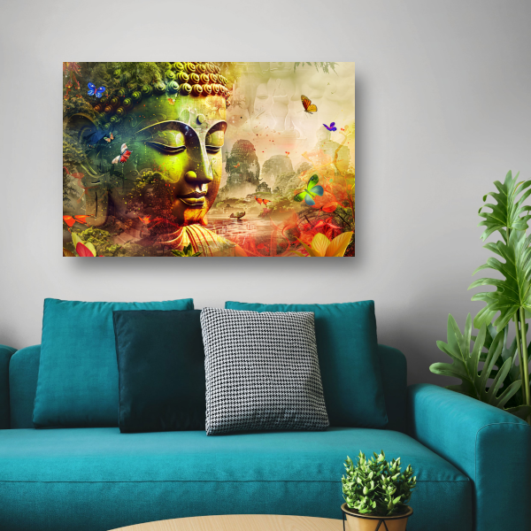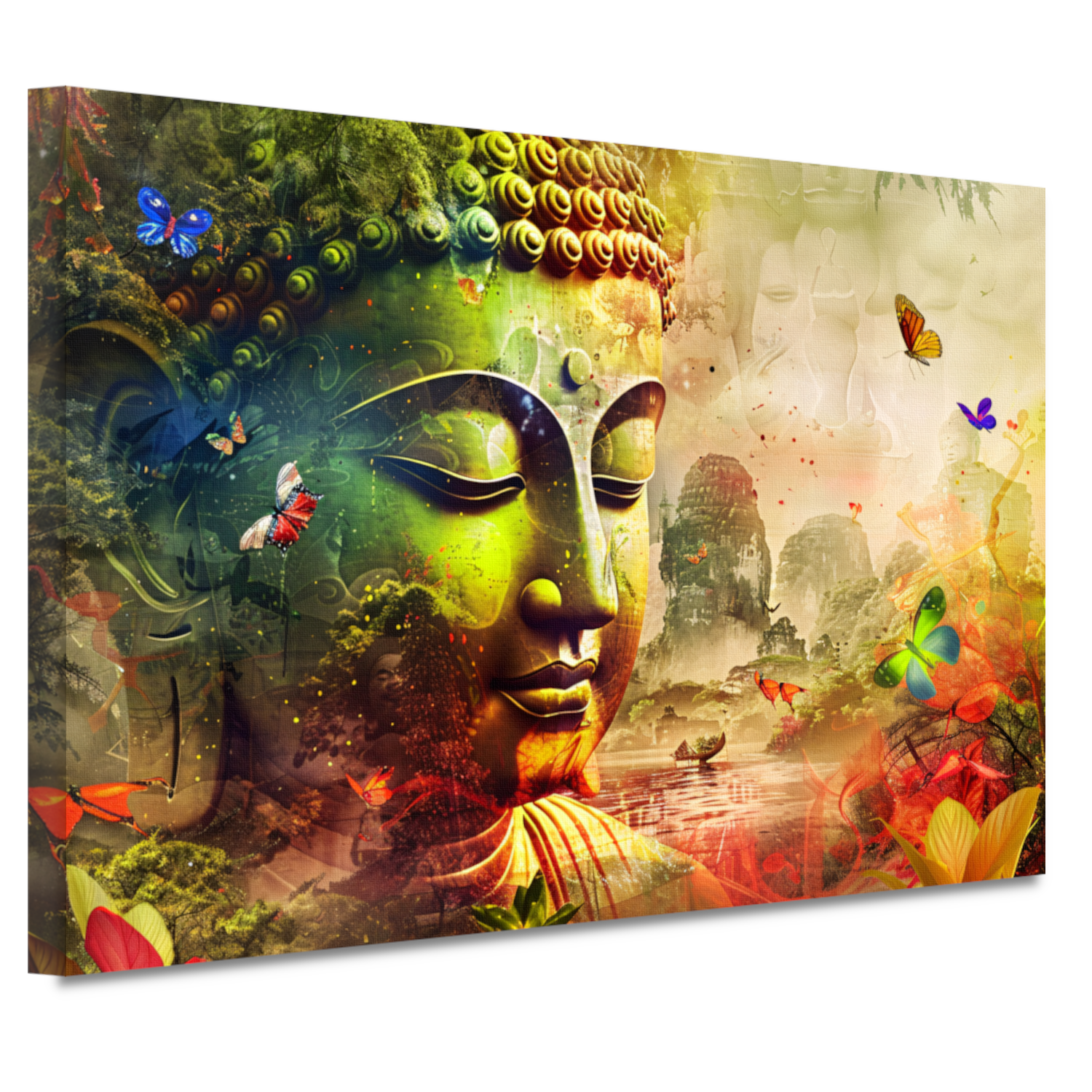 Harmonieuze Boeddha met natuur en vlinders canvas