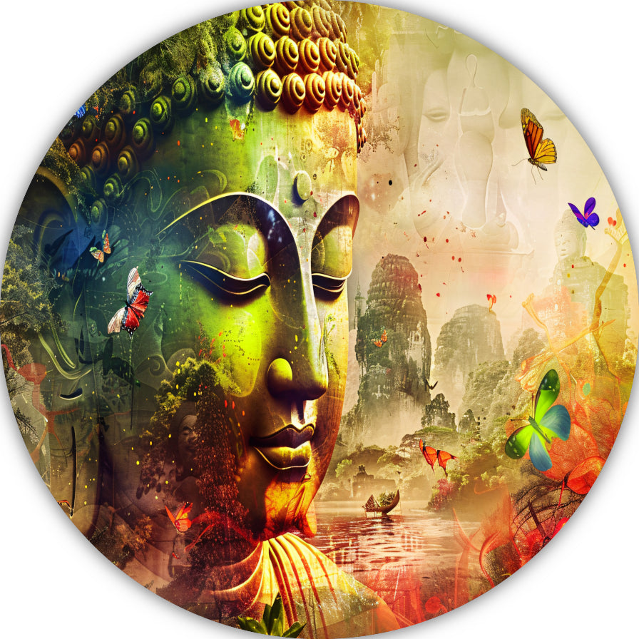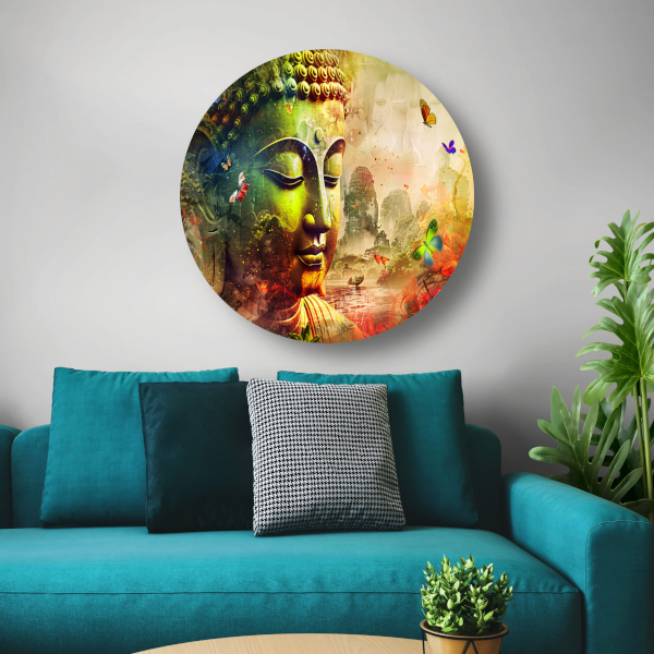 Harmonieuze Boeddha met natuur en vlinders forex muurcirkel