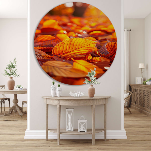 Herfstbladeren in Warm Zonlicht aluminium muurcirkel