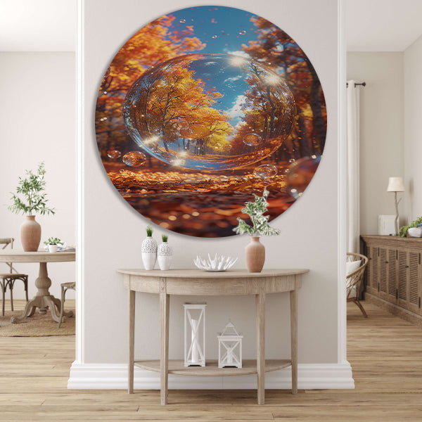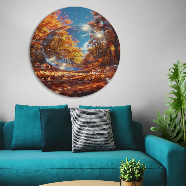 Herfstbol met Bomen in Bos aluminium muurcirkel