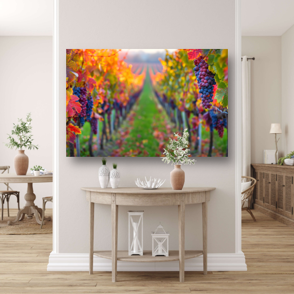 Herfstige wijngaard onder de avondzon canvas met baklijst