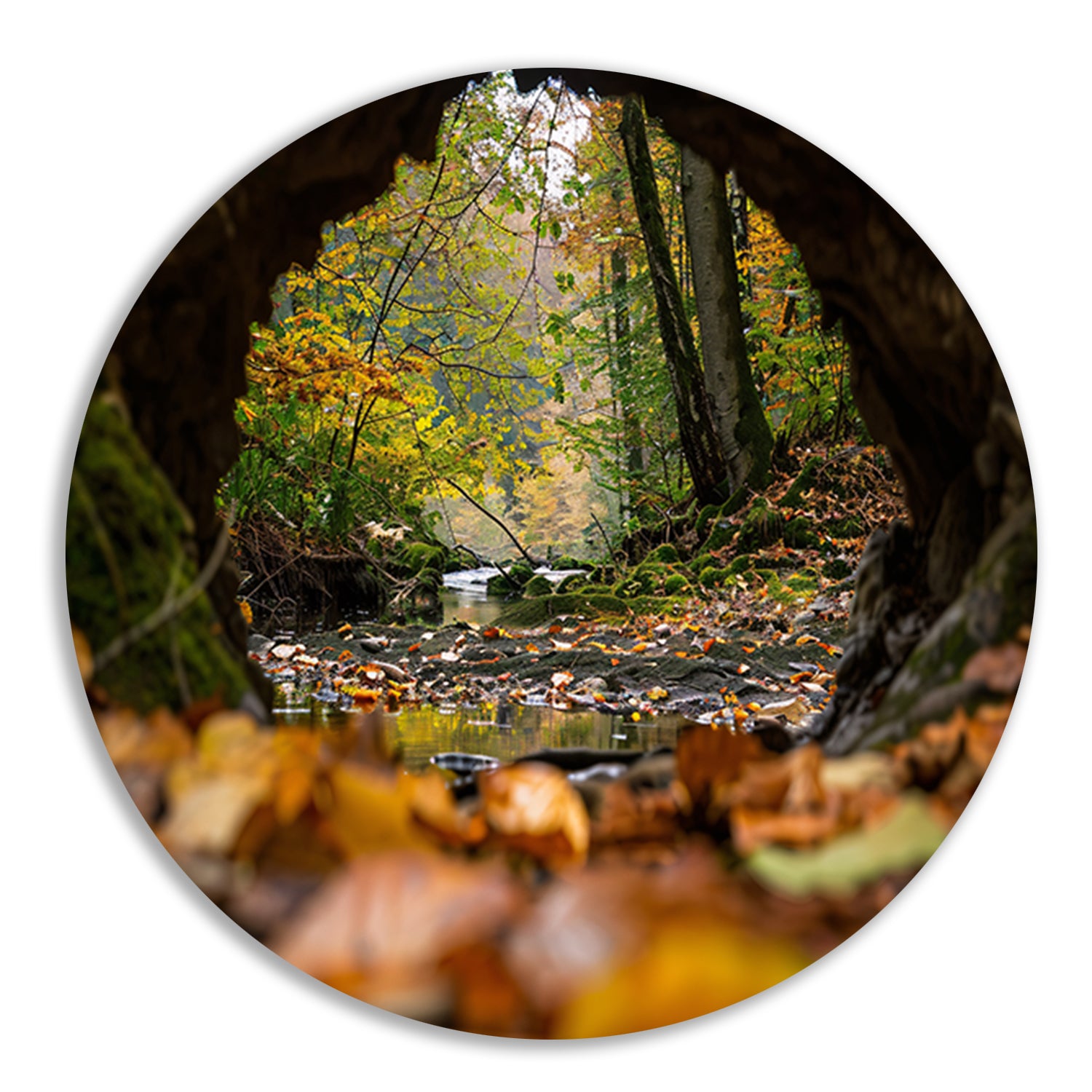 Herfstlandschap met rivier en bomen aluminium muurcirkel