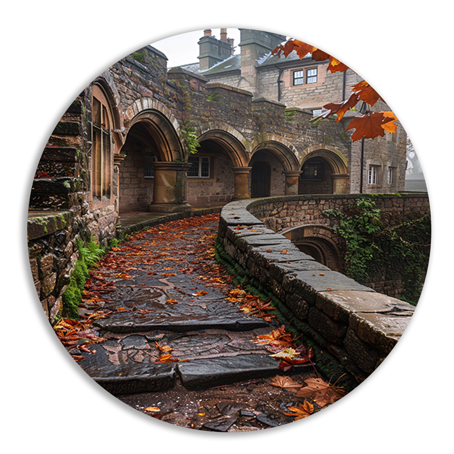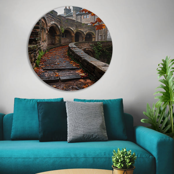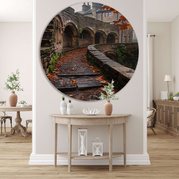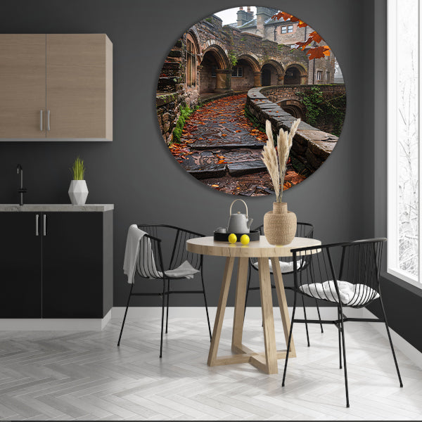 Herfstpad met Stenen Bogen en Bomen aluminium muurcirkel