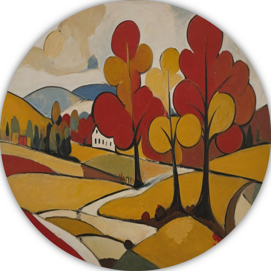 Herfsttafereel met Rode en Gouden Bladeren aluminium muurcirkel