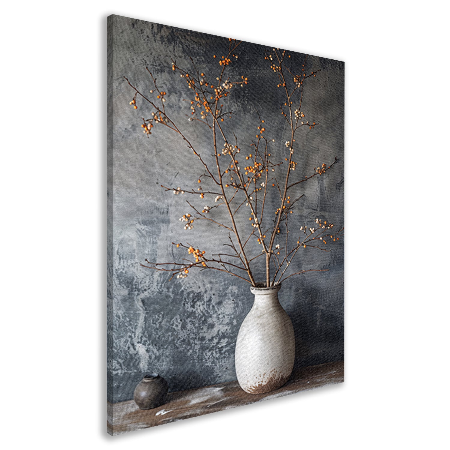 Herfsttakken in witte vaas tegen grijze achtergrond canvas