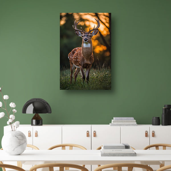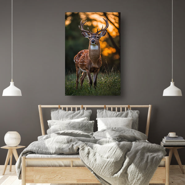 Hert in zonsondergang, natuurgetrouw en sereen acrylglas