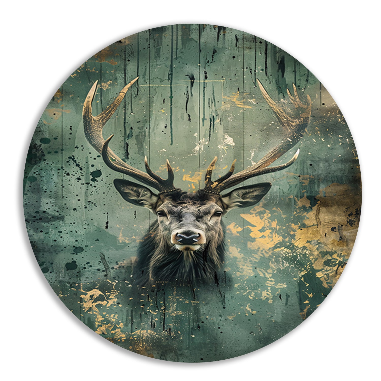 Hert met abstracte achtergrond in groen en goud forex muurcirkel