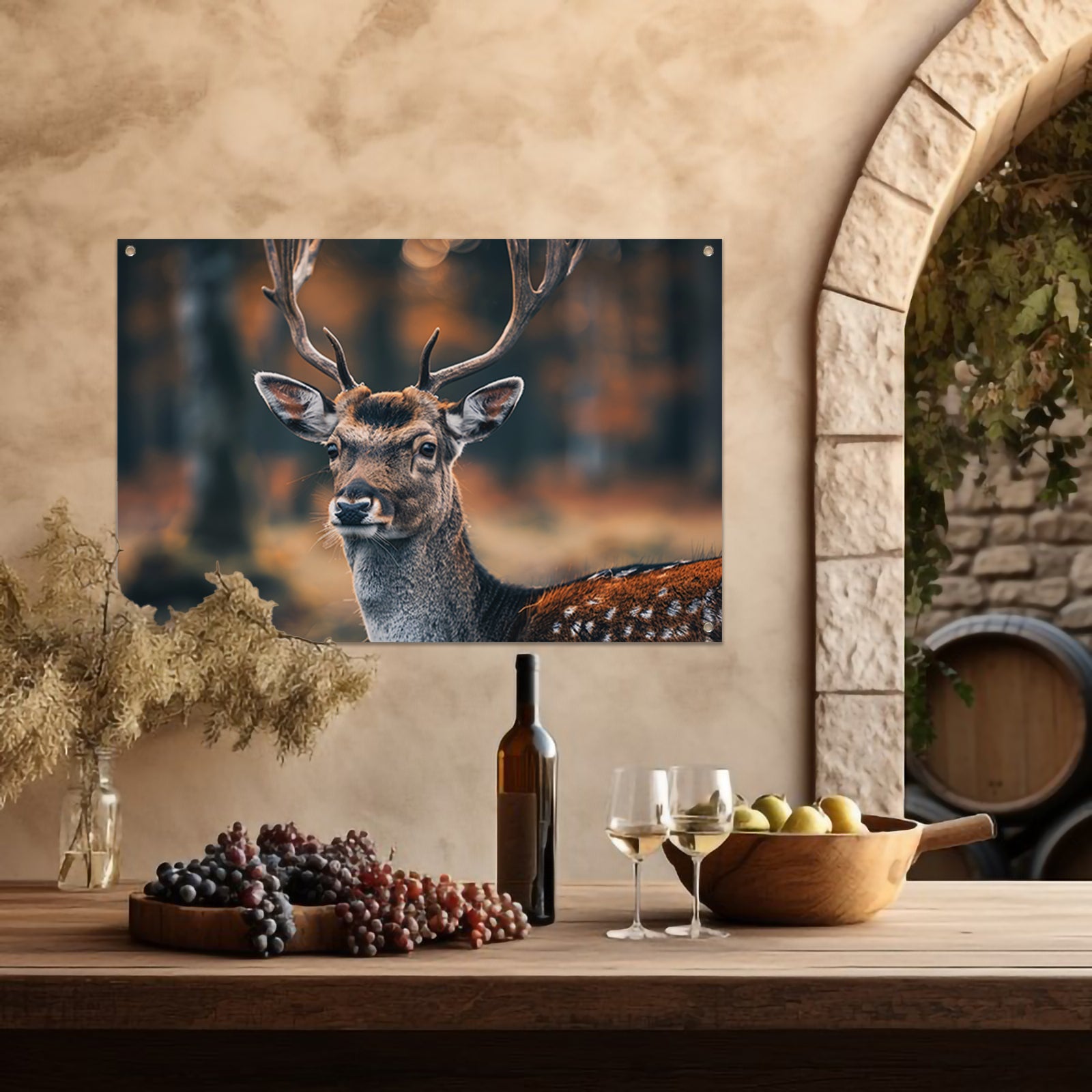 Hert met Gewei in Mystiek Bos tuinposter