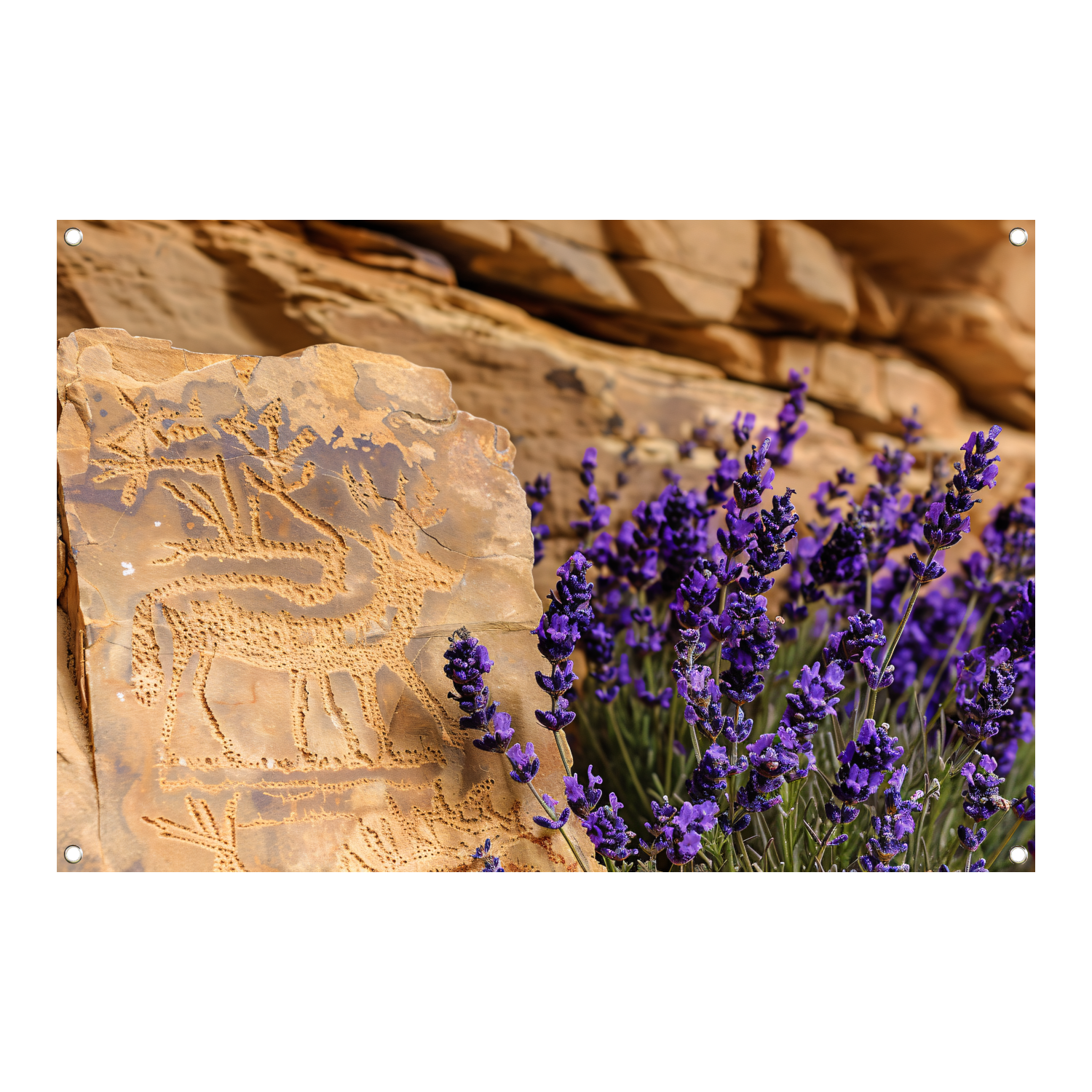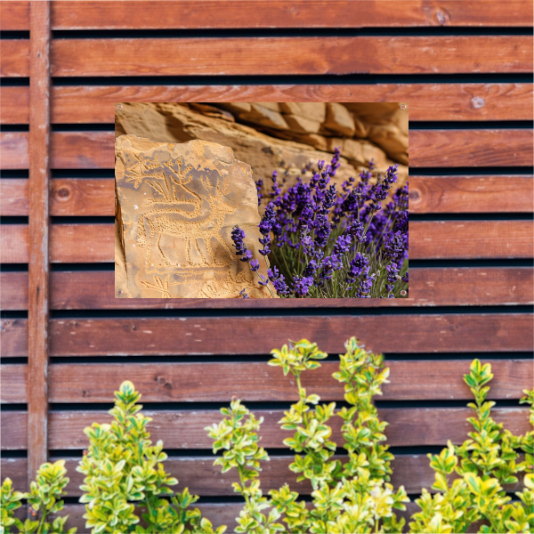 Bestel vandaag nog uw "Hert met paarse bloemen gravure tuinposter" in de gewenste afmeting en geef uw buitenruimte een unieke touch!
