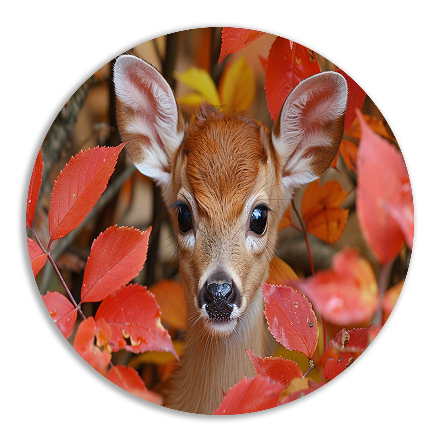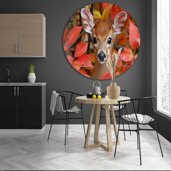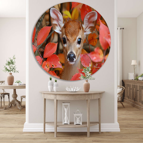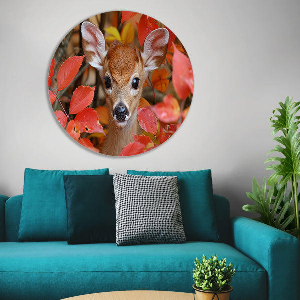 Hert verscholen in herfstbladeren aluminium muurcirkel