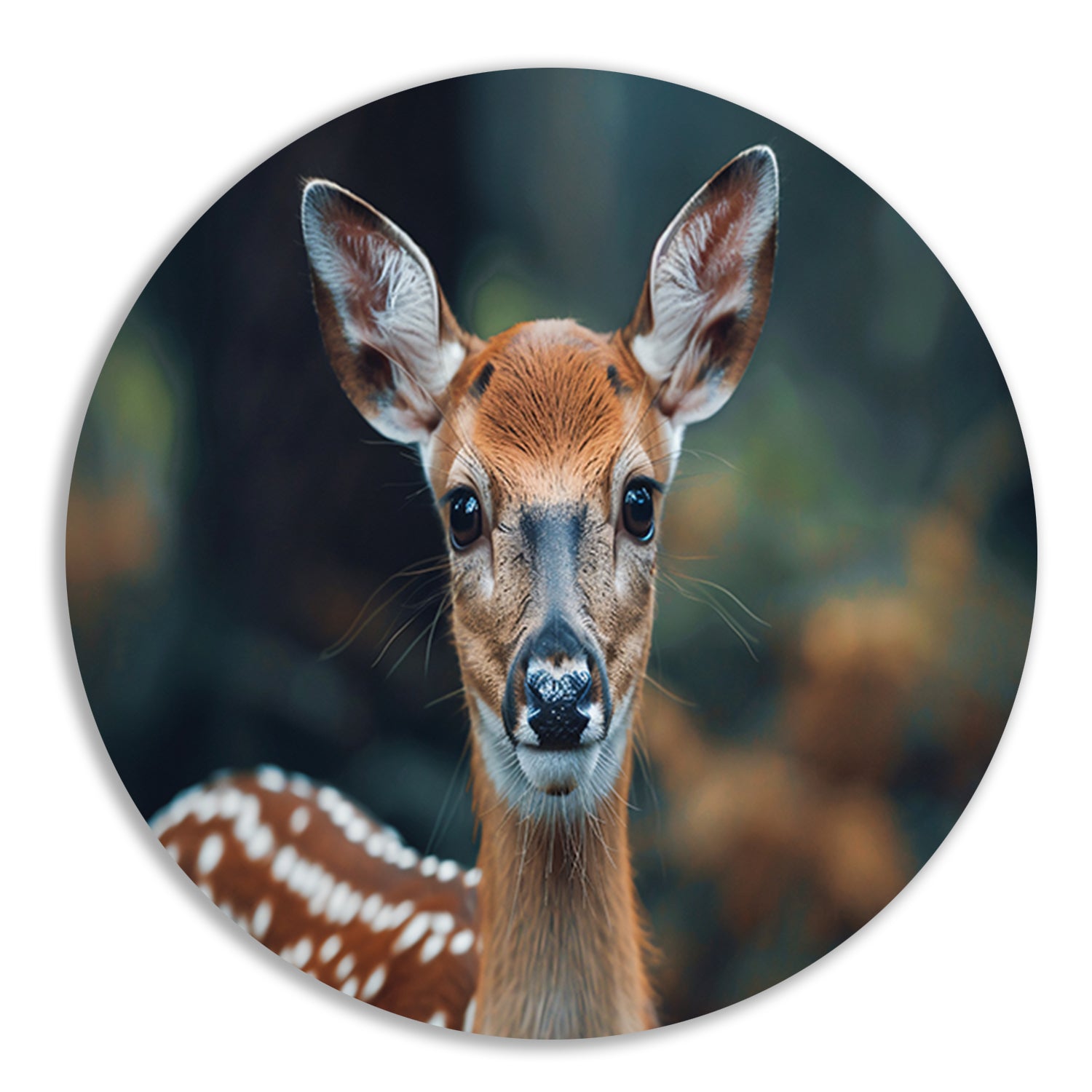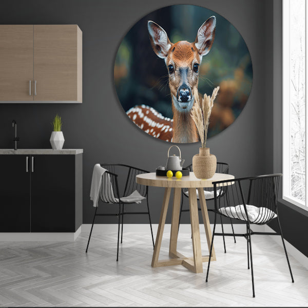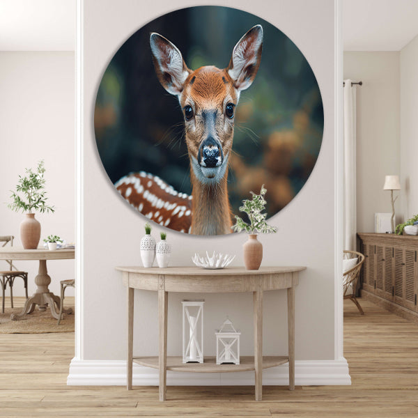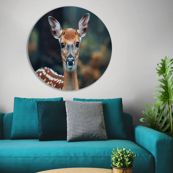 Hertenclose-up met dromerige natuurachtergrond aluminium muurcirkel