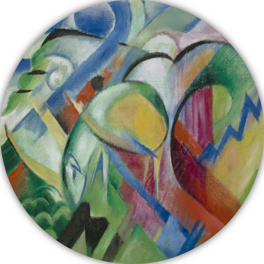 Het levendige en expressieve kunstwerk van Franz Marc komt prachtig tot zijn recht op deze muurcirkel, die verkrijgbaar is in meerdere maten. Of je nu op zoek bent naar een eyecatcher voor in de woonkamer, slaapkamer of kantoor, deze muurcirkel zal zeker de aandacht trekken en een unieke sfeer creëren.