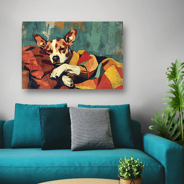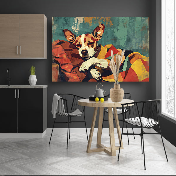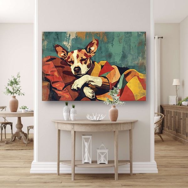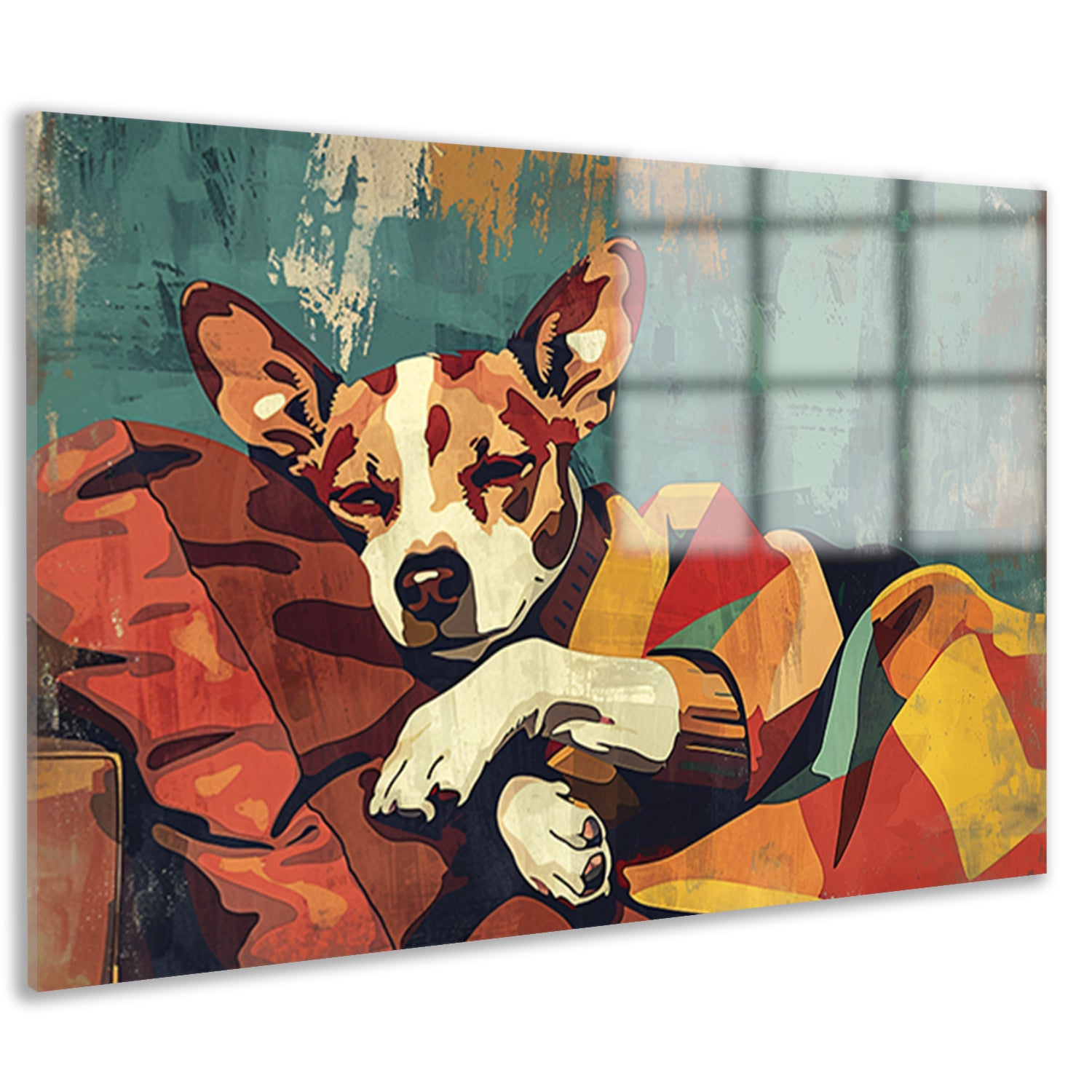 Hondje in kleurrijke deken gehuld acrylglas