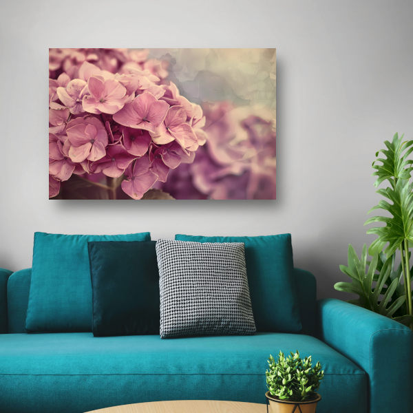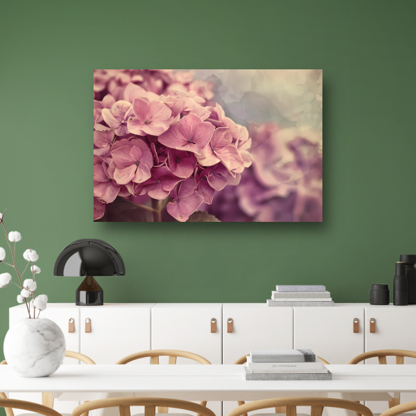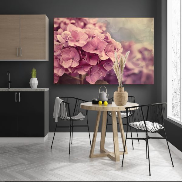 De Hortensias zijn verkrijgbaar in diverse formaten, zodat u ze perfect kunt afstemmen op de ruimte waar u ze wilt tentoonstellen. De zachte roze kleur geeft een warme en rustgevende sfeer aan elke kamer en zorgt voor een subtiel vleugje kleur.