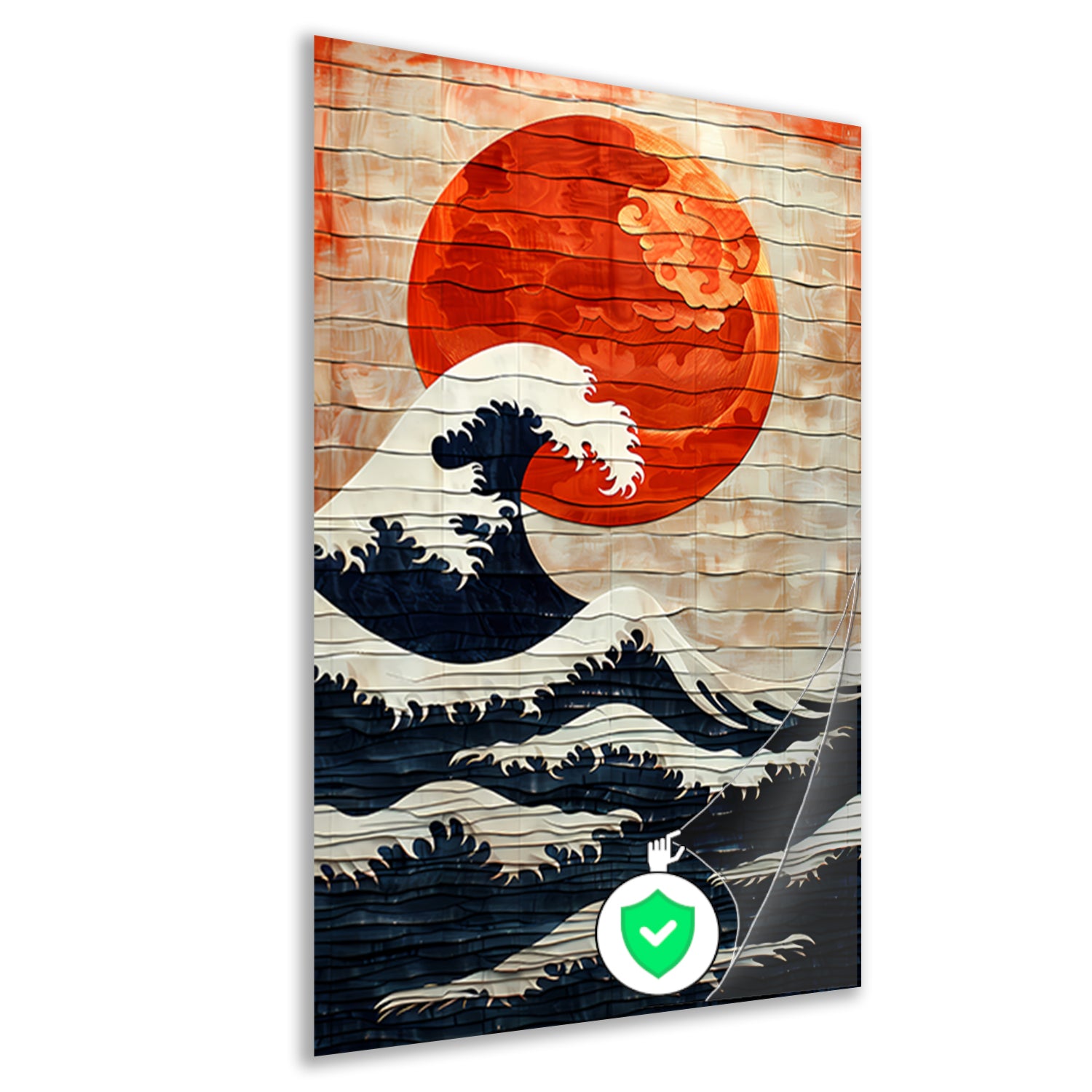 Houten Interpretatie van de Grote Golf poster