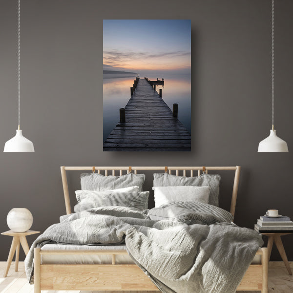 Houten Steiger Mistige Dageraad Stille Zee acrylglas