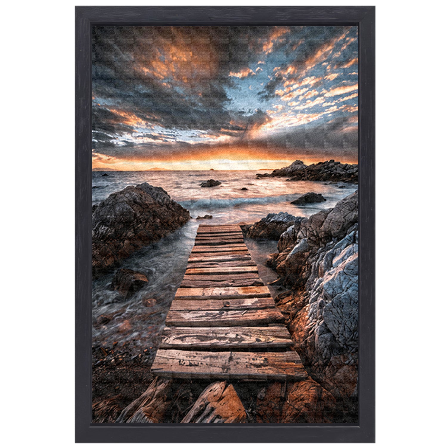 Houten Steiger Tegen Dramatische Zonsonderganghemel canvas met baklijst