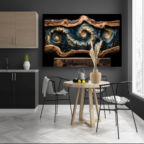 Houten sterrenhemel wanddecoratie canvas met baklijst
