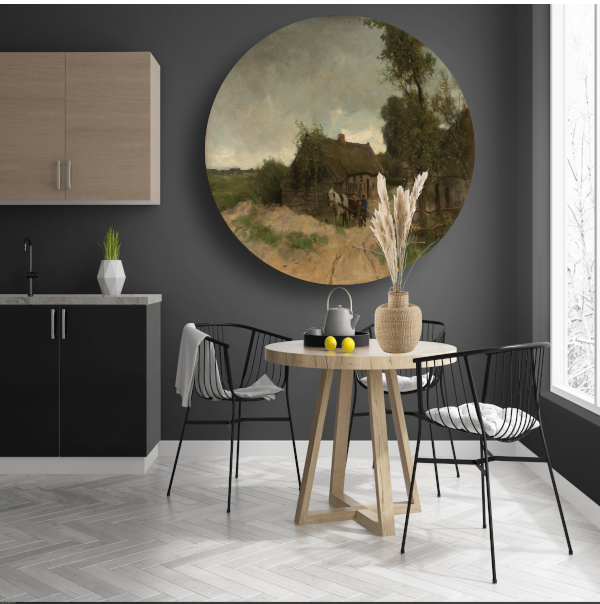 Huisje aan de Zandweg - Anton Mauve aluminium muurcirkel