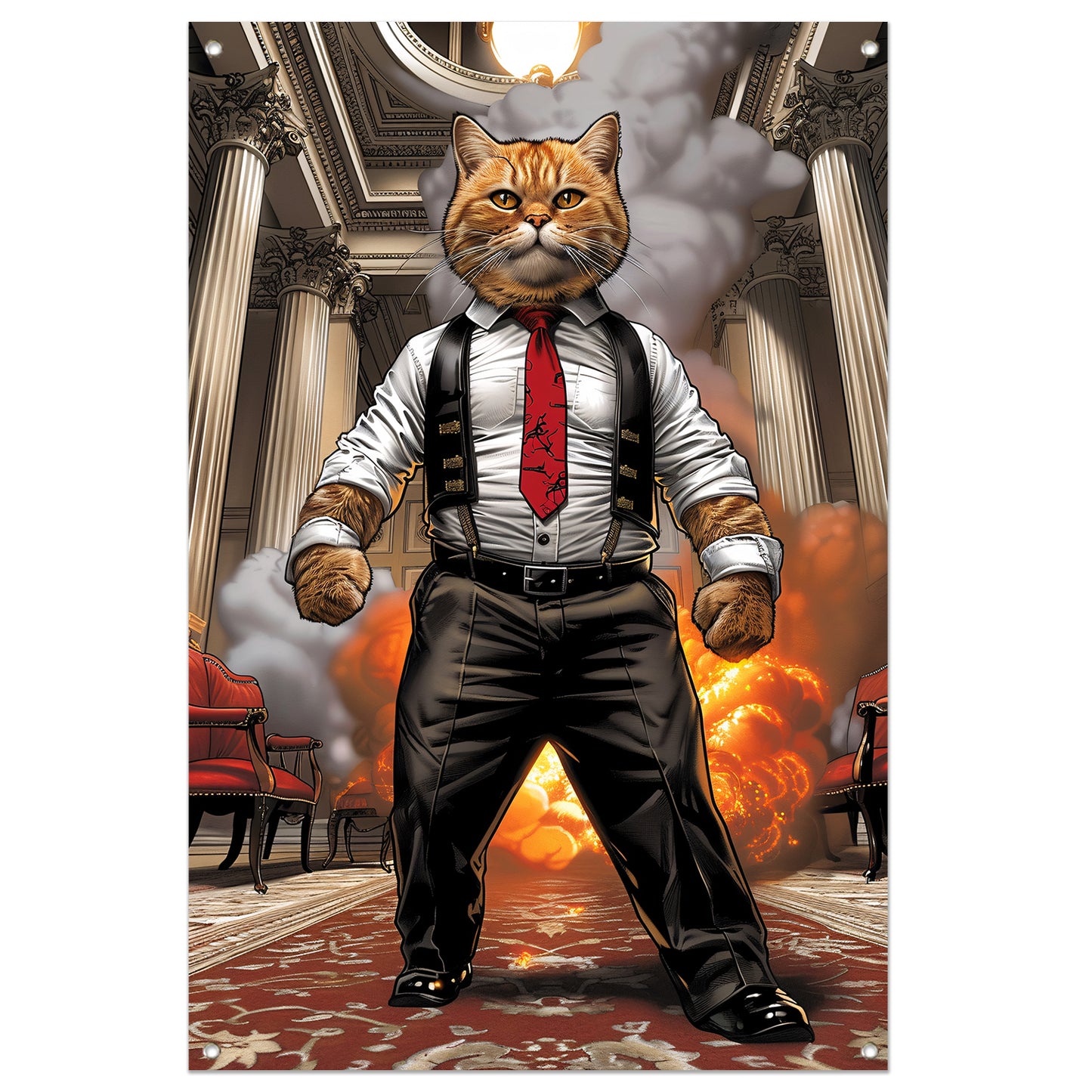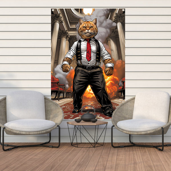 HyperRealistisch kat in pak met explosie tuinposter