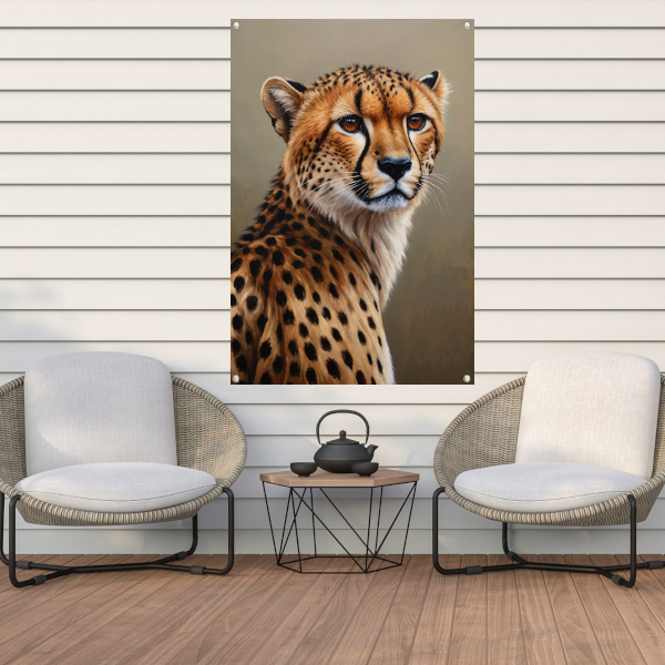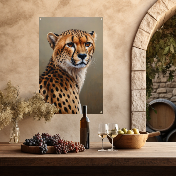 Hyperrealistisch Olieverf Cheetah Portret tuinposter