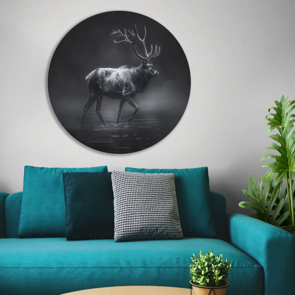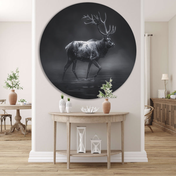 Hyperrealistische zwart-wit foto van hert forex muurcirkel