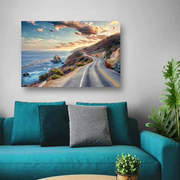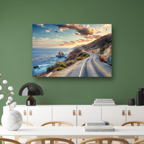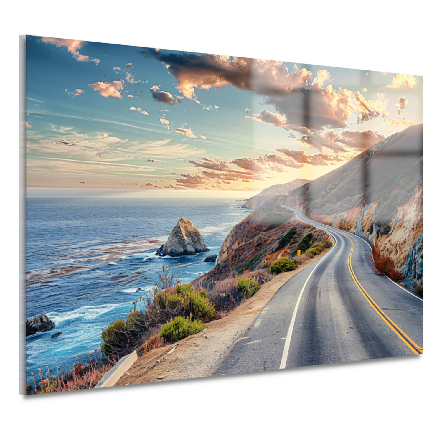 Breng de schoonheid van de natuur in huis met dit impressieistische landschapsweg kunstwerk op acrylglas en creëer een rustgevende en sfeervolle ambiance in elke ruimte.